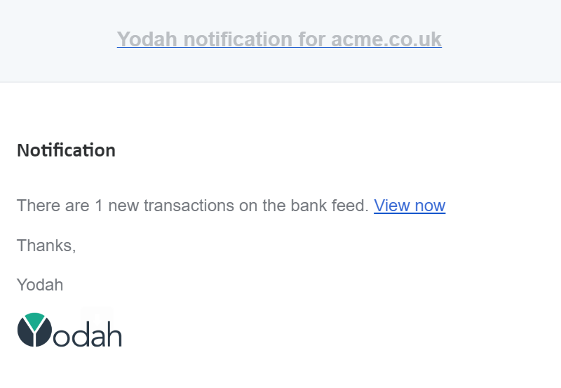 You can setup Yodah to send you notifications whenever you have new bank transactions, keeping your financial records always up to date.